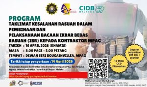 JEMPUTAN PROGRAM TAKLIMAT KESALAHAN RASUAH DALAM PEMBINAAN DAN PELAKSANAAN BACAAN IKRAR BEBAS RASUAH (IBR) KEPADA KONTRAKTOR MPAG27 March 2026 Baca Lagi